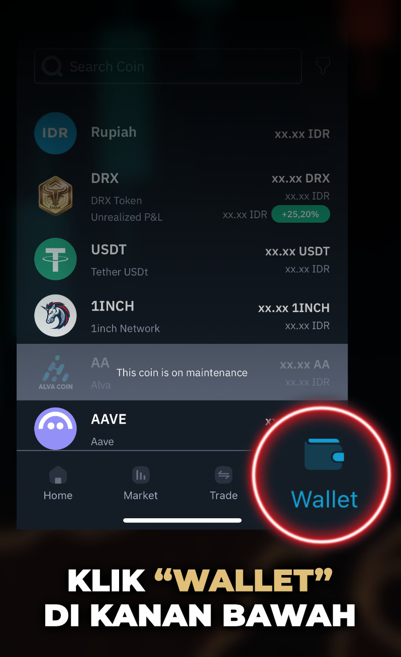Anda hanya perlu membuat akun Indodax, deposit Rupiah melalui transfer bank atau e-wallet, lalu mencari market DRX/IDR. Setelah itu, lakukan pembelian sesuai jumlah yang diinginkan.