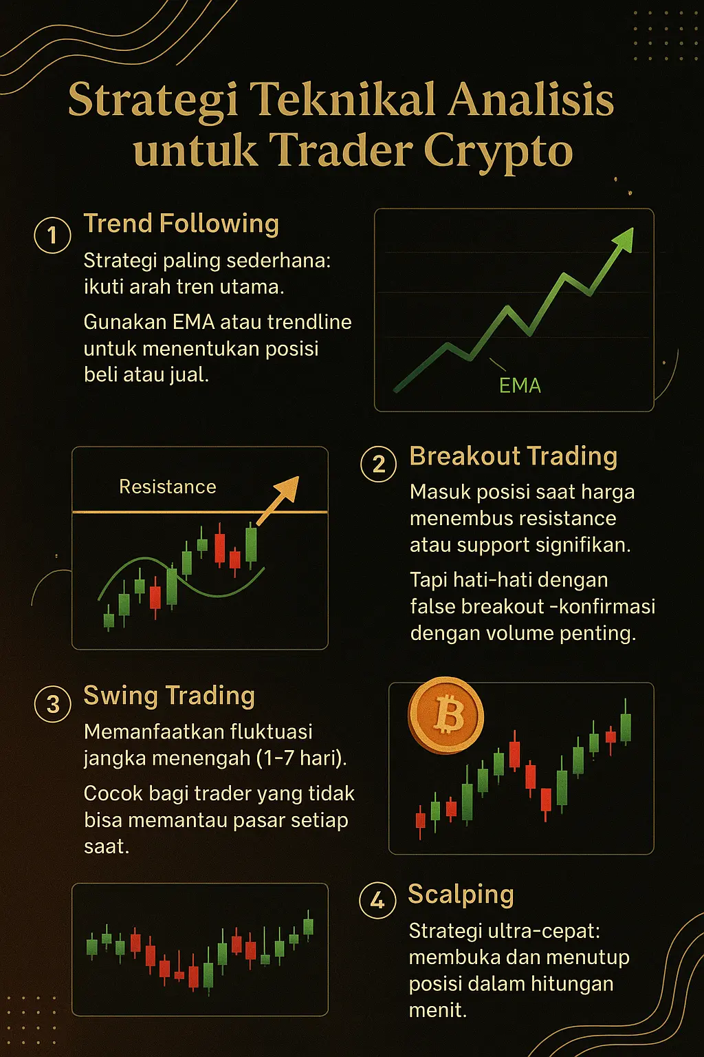 Analisis teknikal crypto adalah metode membaca data harga historis untuk memprediksi arah pasar dan menentukan waktu entry/exit terbaik.